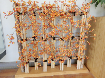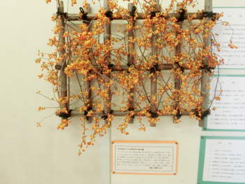 豊西小学校の職員玄関と校長室の前にツルウメモドキが飾られています。