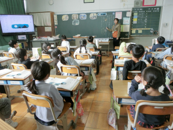 • 1年生の教室から「たぬきの糸車」を読む声が聞こえてきました。