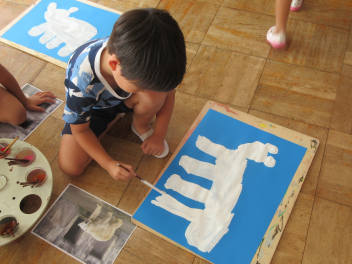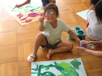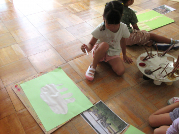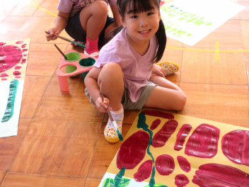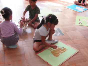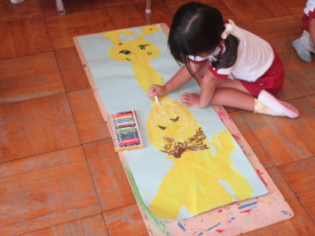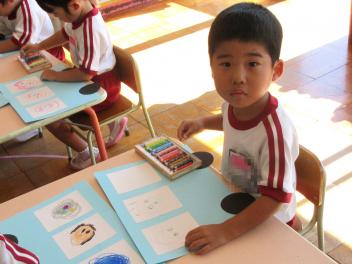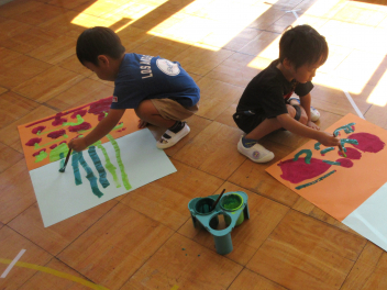 ばら組さんは、早速、製作に取り掛かりました。地下と地上に分け、地下に美味しそうなサツマイモを、地上に蔓を描きました。