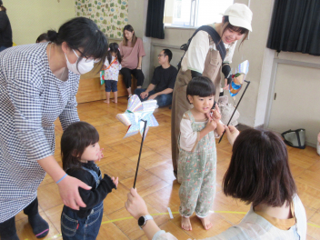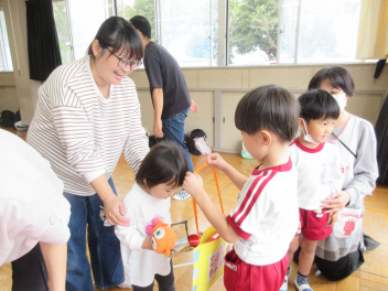 そら組さんは、リースづくりをしました。保護者と一緒につくる製作はとても楽しそうでした。ボランティアとして参加された多くの保護者の皆様、いつも本当にありがとうございます。