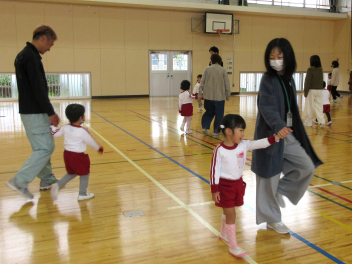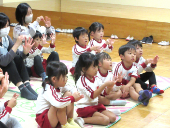 源長院に到着して、和尚さんのありがたいお話を拝聴しました。そして、座禅の組み方を教えていただきました。狭窄は、「志村けんのお寺のコント」さえ知らない園児たちにとっては初めて見るもので、園長がお手本になって(?)実演しました。