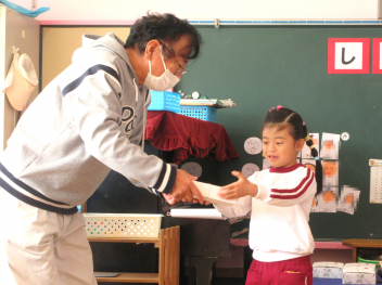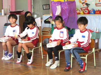 15分の座禅でしたが、園児たちは姿勢よく座禅体験をすることができました。特に姿勢の良かった3人が、和尚さんからお褒めの言葉をいただきました。