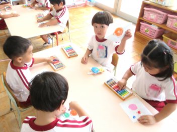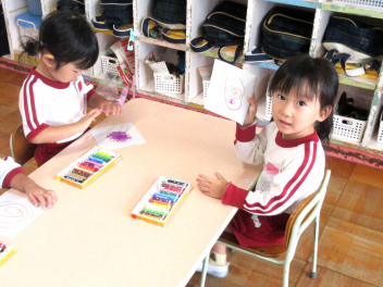 研究者によると、クレヨンで絵を描かせると、女の子は赤、オレンジ、緑、ベージュといった温かい色で人物やペット、花や木を描こうとし、男の子は黒や灰色といったどちらかと言えば冷たい色で車や列車、ロケットなどなんらかの動きを表現しようとするそうです。たしかに、今日の製作でも、普段の「ごっこ遊び」でもその傾向が見られます。男女差別は絶対にいけませんが、男子と女子の違いはあるのかもしれません。