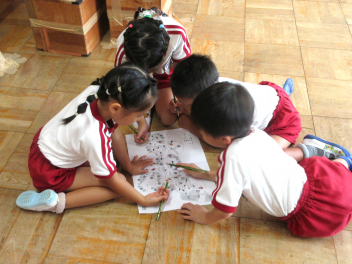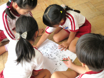 うさぎ組さんは、応援に使う旗を製作していました。