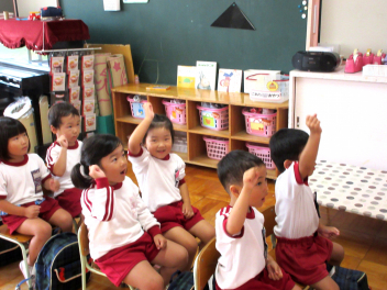 園児たちは、先週読み聞かせで読んだもらったエリック・カールの『パパ、お月さまとって!』のお話がとても気に入っていたようです。