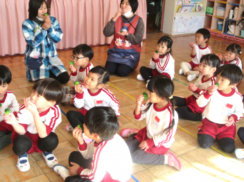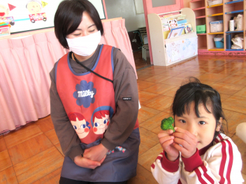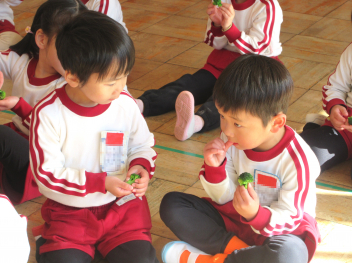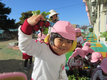 さて、本日は、うさぎ組さんが育ててきた「はつか大根」を収穫し、みんなで食べました。これで、3学期も元気に、健康な日々を送れそうです。