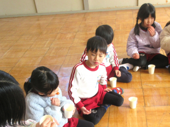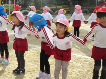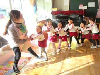 今日も、寒風吹きすさぶ中、「あったかマラソン」を走りました。風が冷たいので、「なかよしタイム」は、遊戯室に移動して、行いました。