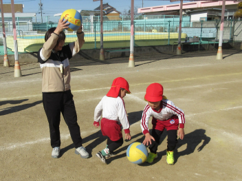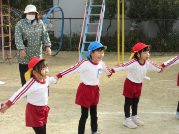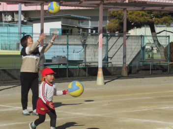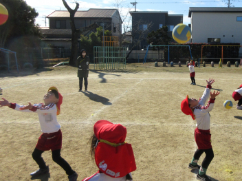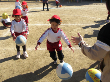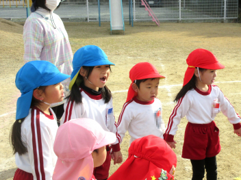 暦の上ではもう少しで春。寒さが少し緩んだ今日、ばら組さんが元気集会を行いました。ボールを使った運動で体を温めました。ボールを投げる動作は、園児にはまだ難しい動きです。最後は「ベースボール」ではなく、「転がしドッジ」で楽しく運動しました。子供は「ドッジボール」が大好きですね。嬉しさや悔しさが爆発します。はじける表情がまぶしい朝でした。