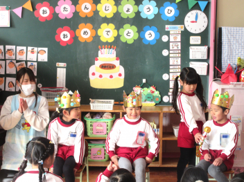 今日は、「誕生会」でした。保護者のメッセージが読み上げられると、毎月のことながら、見ているみんなが感動に包まれます。親御さんも、生まれてきた日のこと、名前を付けた思いなどが蘇り、胸打つ時間となったことでしょう。