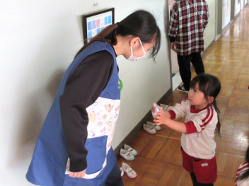 その後、『夢をはぐくむ園づくり』の委員さんに、福の神になっていただいて、お菓子をまいていただきました。園児たちは、お菓子を角香箱いっぱいに入れて、御満悦。「福」をいっぱい詰め込むことができました。委員の皆様ありがとうございました。