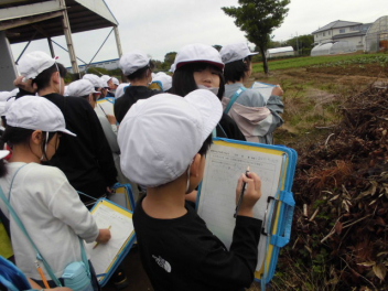 今日は、3年生全員でじゃがいも農家を見学し、豊岡地区の名産であるじゃがいも作りや農家の仕事について話を聞いたり、実際に畑を見たりしてきました。また、ニンジンの収穫体験もさせていただき、自分で抜いた様々な形、大きさのニンジンを大切そうに持ち帰っていました。