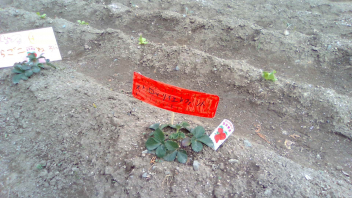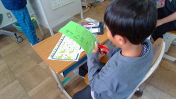 • ふれあい1,2組の子どもたちで、畑に植えた苗の名前を考え、看板づくりをしました。