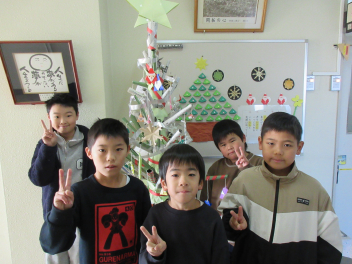 みんなで知恵を出し合い、どんなクリスマスツリーにするか相談をして作りました。