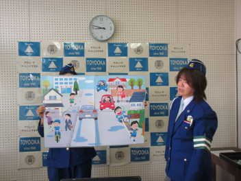 交通安全指導員の方から、交通安全マナーについて話をしていただきました。