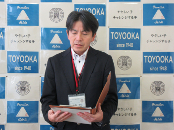 校長先生からは、今年の校長先生の一文字「笑」が紹介されました。
