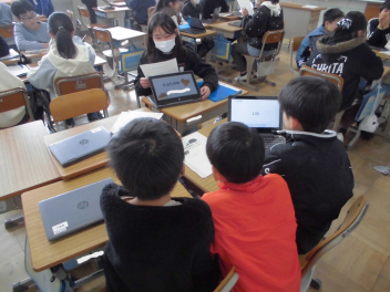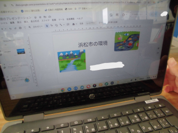 内容をスライドにまとめているクラスがあったり、発表を聞き合ってアドバイスをし合っているクラスがあったりしました。