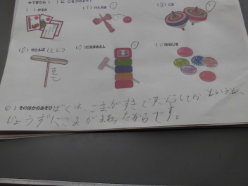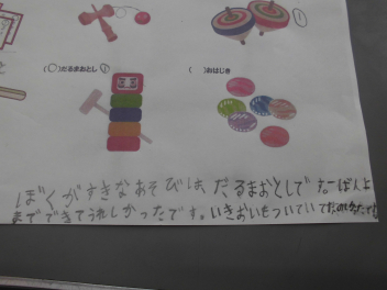 けんだま、お手玉、こま、だるま落としなど自分がやってみたいことを