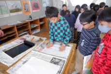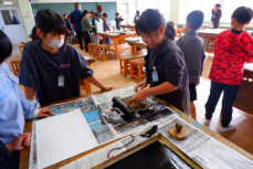 あるクラスは、紙版画の印刷を図工室で行っていました。