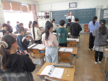 外国語科では、スピーキングテストに向けて自分の思いを英語で伝えられるよう練習しています。