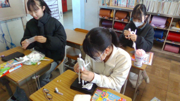 自分たちでいろいろな桜の作り方を調べて、ハサミで丁寧に切りました。
