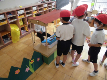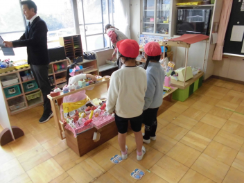 園児たちが頑張るお店にお客さんとして参加しました。