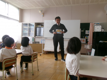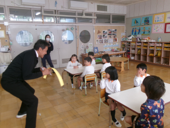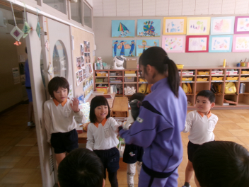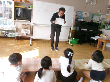 第1回は三方原幼稚園が会場。2回目は豊岡幼稚園で行いました!「観劇」も同じ日。50人近い子供たちも大喜びでした!