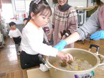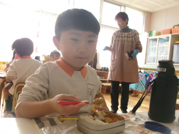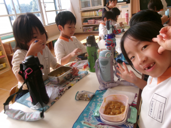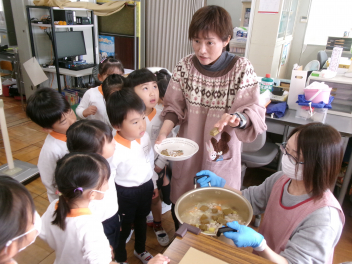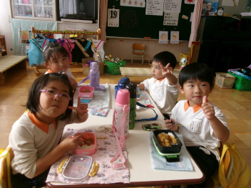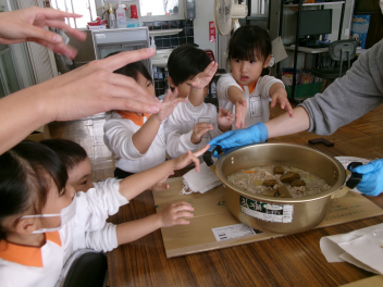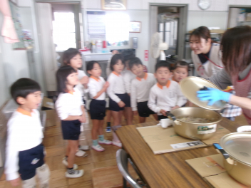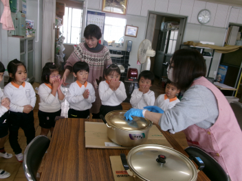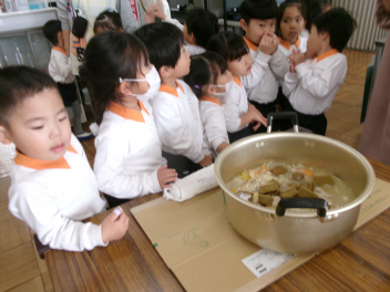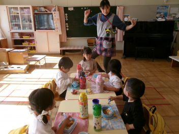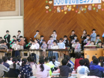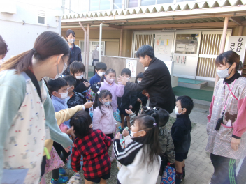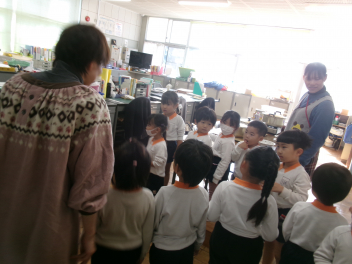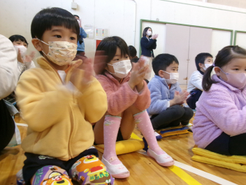 最後に、感想をお話しました。特に年長さんは、「楽器の音を聞いて元気が出ました。」とか「ホルンの音がとてもいい音でした。」「ジャンボリーミッキーがとても楽しかった。」など素晴らしい感想が言えていました。楽団の皆さんも「今までの感想で一番うれしかったです!」と褒めてくださいました。