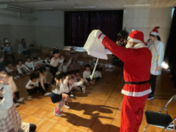 • 子供たちがずっと楽しみにしていた「クリスマス会」を行いました!良い子の所にはきっとサンタさんが…願いは今年も叶いました!
