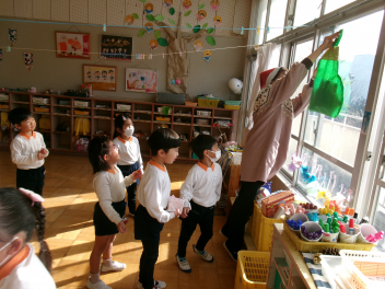 年少さんは、実は欠席がとても少ない学年です。何と、現時点で4月から無欠席の子が2人もいます。うさぎ組の部屋は職員室から良く見えるのですが、手洗いやうがいを一生懸命やっています。寒くなると水が冷たくて手洗いがいい加減になりがちです。これからもしっかり手を洗ってくださいね!