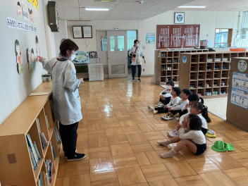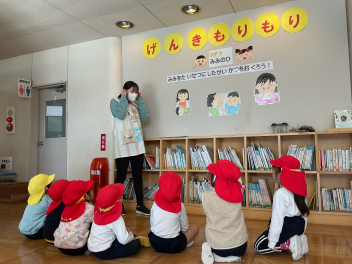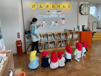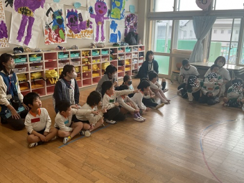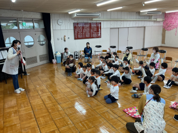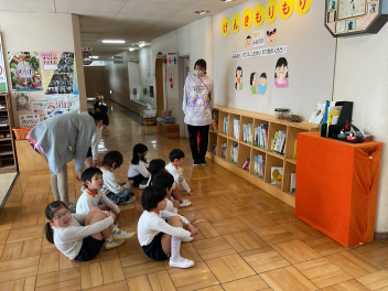 最後はお母さん先生になっていただき、大型絵本を読んでくいただきました。「はじめてのおつかい」の絵本も、とっても良い話でしたね。お母さん方にはお忙しい中、ご参加いただきありがとうございました!
