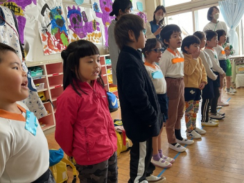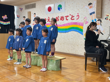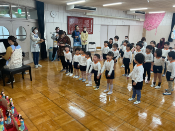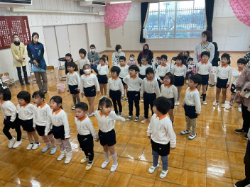 • 6日(金)卒園式のリハーサルを行いました!年少さん年中さんも参加してのリハーサル。「がんばるぞ!」「おめでとう!」の心のこもった練習ができました!