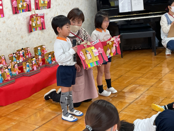 ひな祭り会ではクイズが終わると、それぞれの学年の代表して自分の作品を紹介してくれました。