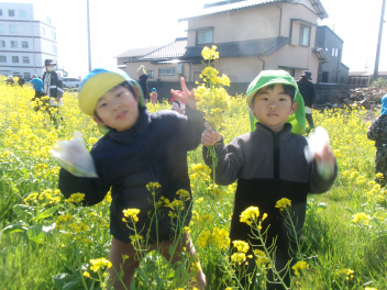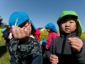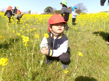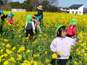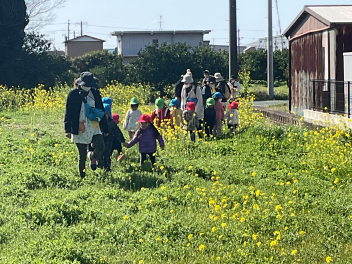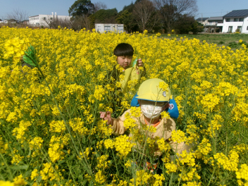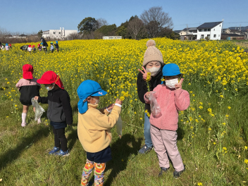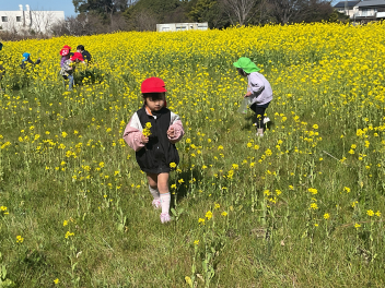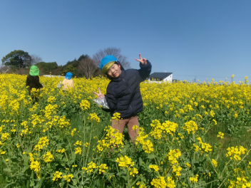 • 3月のおひさまの日は「春をみつけよう!」をテーマに園外に出かけています。今年は2年ぶりに「松浦さんの菜の花畑」で遊ばせていただきました!