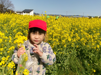 とても広い畑は大きくて背の高い菜の花が多いので、場所を限定して花を観賞したり、摘んだり、かくれんぼをして遊んだりしました。