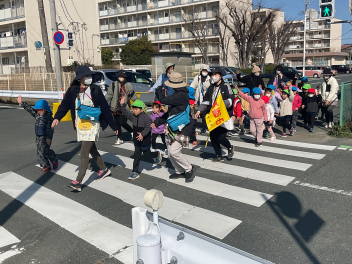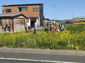 幼稚園を出発!横断歩道もしっかり渡って菜の花畑へ。そこには菜の花畑が広がっていました。