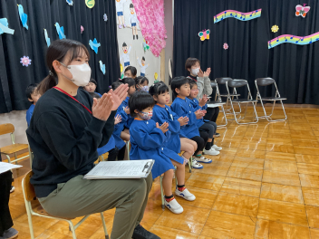 リハーサルを終え、年少さん年中さんは各部屋へ。年長さんは遊戯室に戻り、保護者・来賓の皆様に見ていただく「思い出のアルバム」を皆で大きなスクリーンで視聴しました。年少さんの写真が出ると「なつかしい!」「うさぎ組の時は小さかったねー。」「覚えてる覚えてる。」などとみんなで思い出をたどりながら3年間の振り返りをしました。週末から再び寒さが戻っています。本番まで体調をしっかり整えて、素晴らしい卒園式にしていきましょうね。