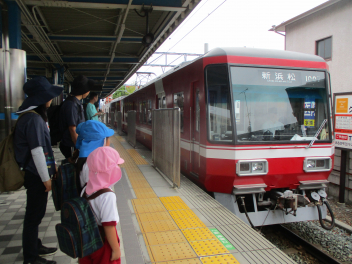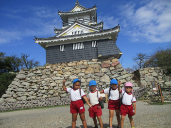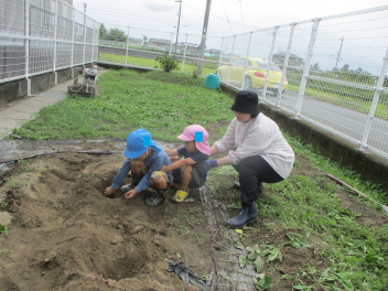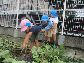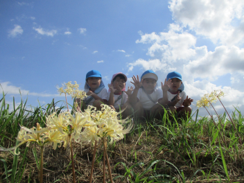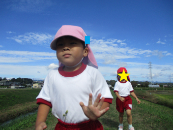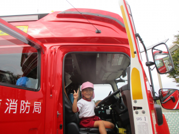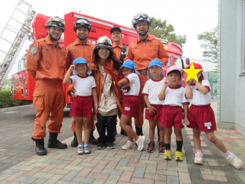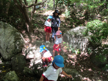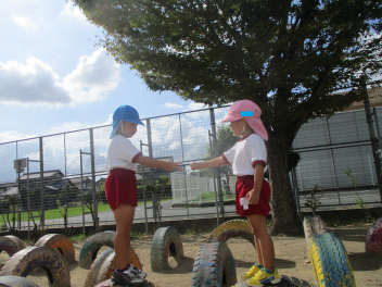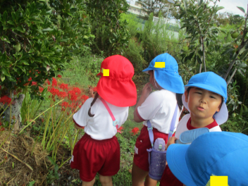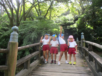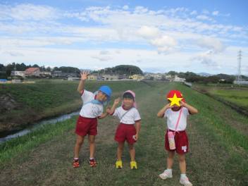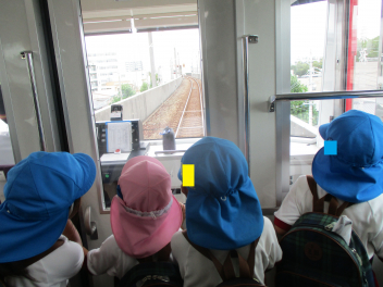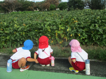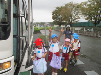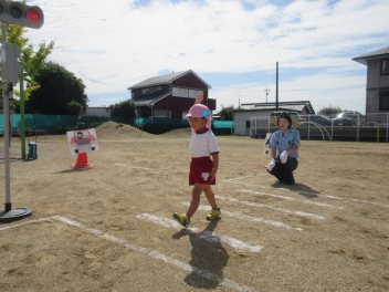 年中・年少児は、園庭にある道路を歩いてた後、実際の道路を歩いてみます。