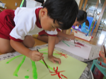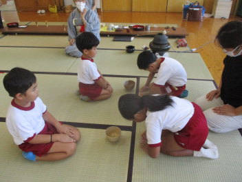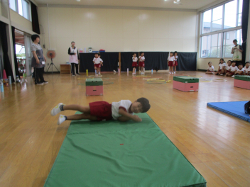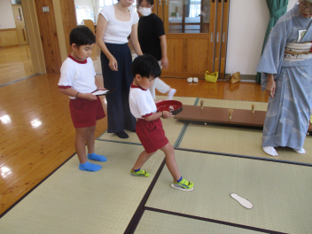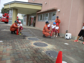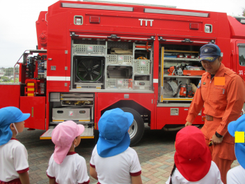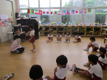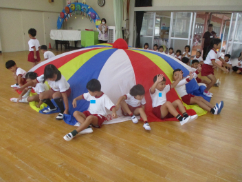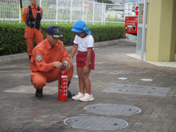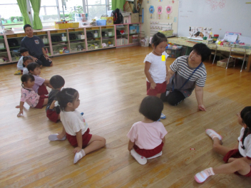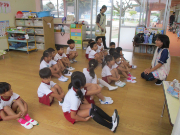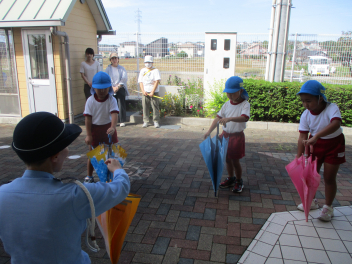 年長児は、傘の扱い方について、教えていただきました。