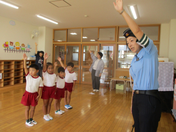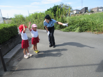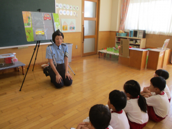 交通指導員さんから、交通ルールや道路の歩き方について教えていただきました。