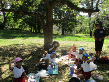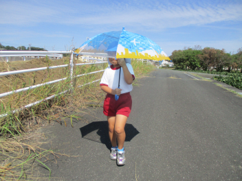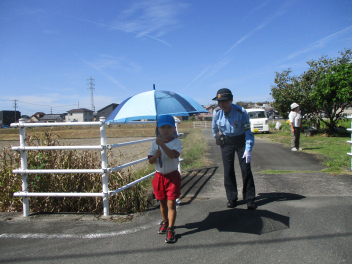 傘を閉じたり、ひろげたりすることは難しかったけど、交通指導員さんの話を聞きながら頑張っていましたね。