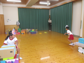遊戯室に移動し、みんなで運動会ごっこをして遊びます。
