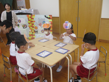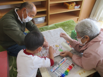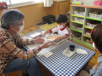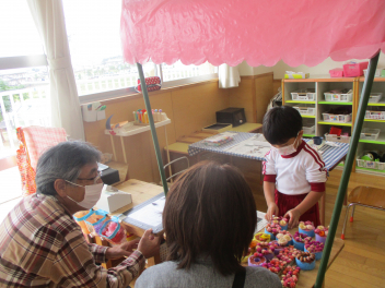 祖父母と一緒に遊べるものを作ったり、ケーキ屋さんをしたり、歌のプレゼントをしたりしました。