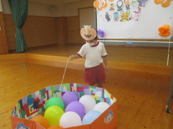 段ボール箱を積んだり、ボールを運んだり、魚釣りでビンゴゲームをしたりなど、楽しく遊ぶことができて、子供たちは大喜びでした。