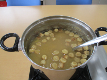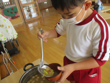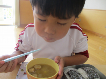 今日は、サツマイモの味噌汁を食べました。