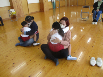 お母さんに抱っこしてもらって、安心したね。嬉しかったね!