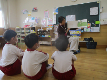 紙芝居では、自分がどうやってお母さんのお腹から生まれてきたのか、その時、お母さんや赤ちゃんはどんな気持ちだったか知ることができました。