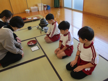 今日は、保護者をお招きして、お茶会の参観会がありました。
