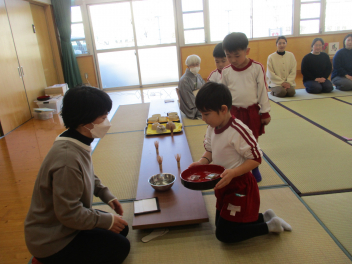 地域の講師の方やボランティアさんに教えていただきながらお茶会をします。