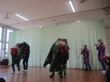 最後に、今までお茶会の作法についてご指導いただいた地域の講師の方に、お礼の気持ちを込めてプレゼントを渡します。