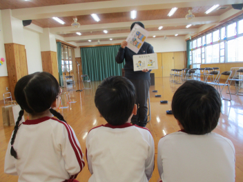 4月から1年生になる年長児は、防犯協会さんから、不審者についてのお話を聞きました。